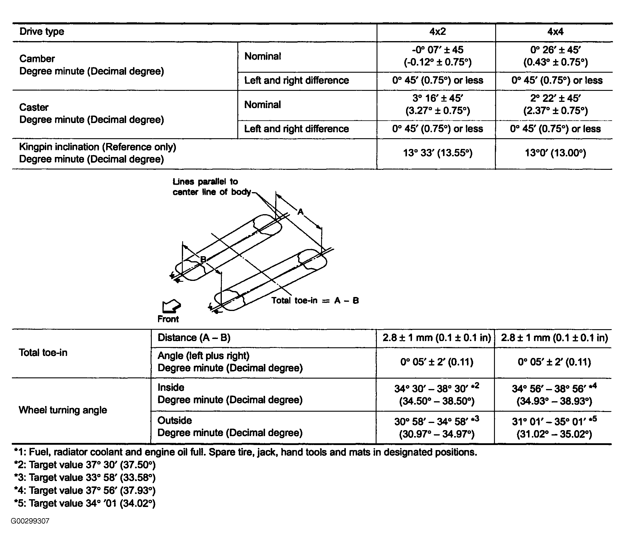 Fig 1: Front Wheel Alignment Specifications (Titan)