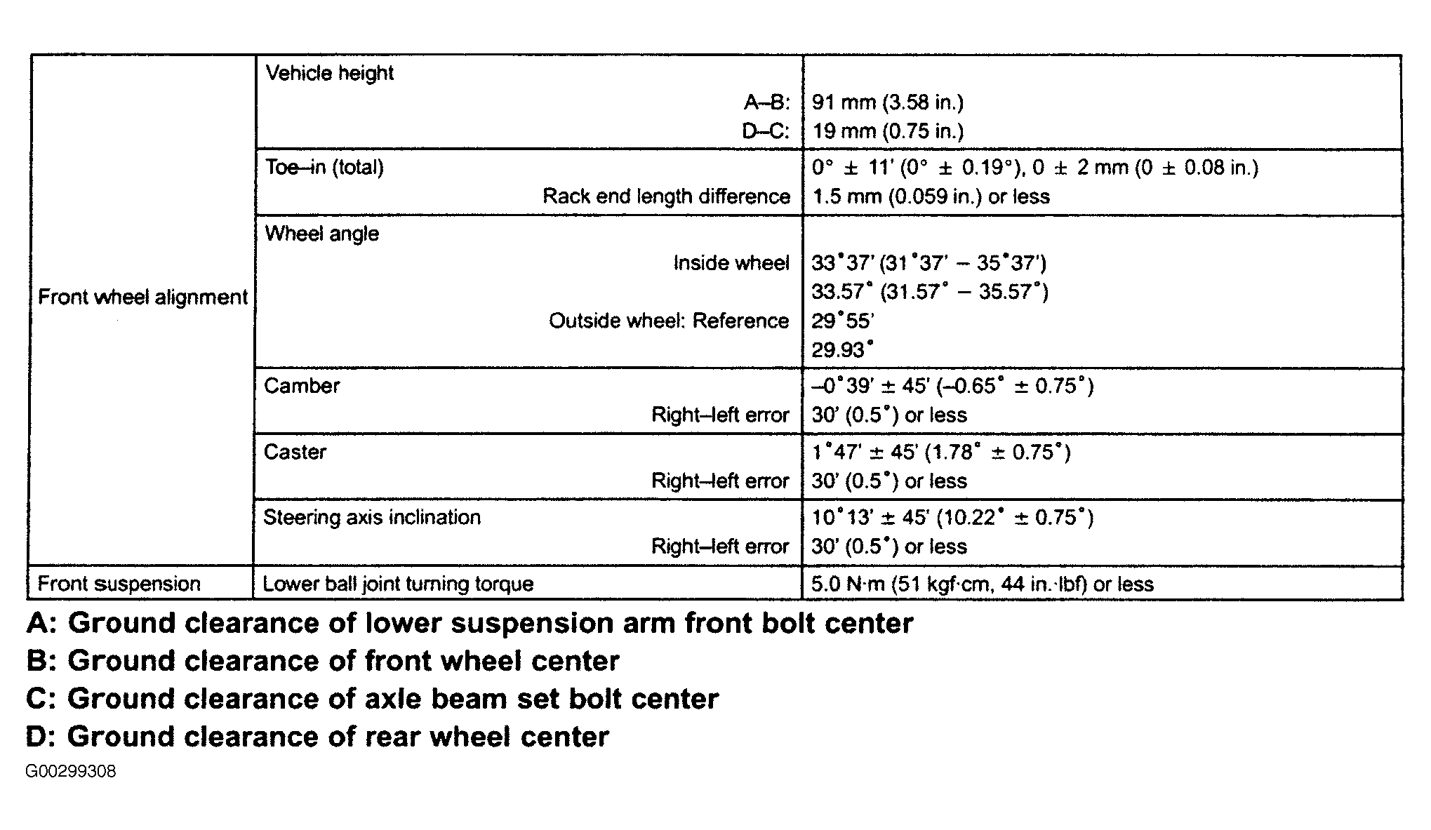 Fig 1: Front Wheel Alignment Specifications (xA)