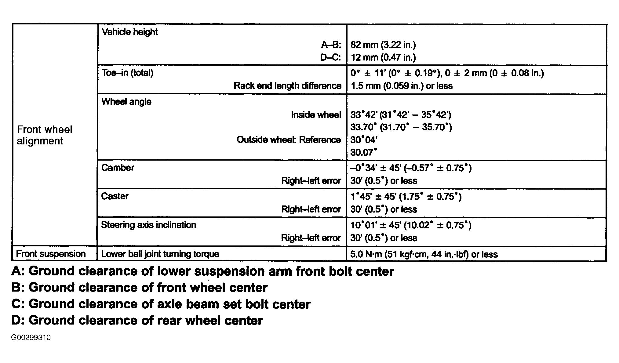 Fig 1: Front Wheel Alignment Specifications (xB)
