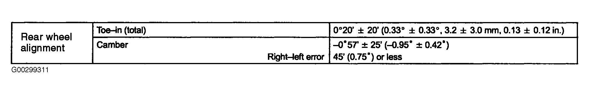 Fig 2: Rear Wheel Alignment Specifications (xB)