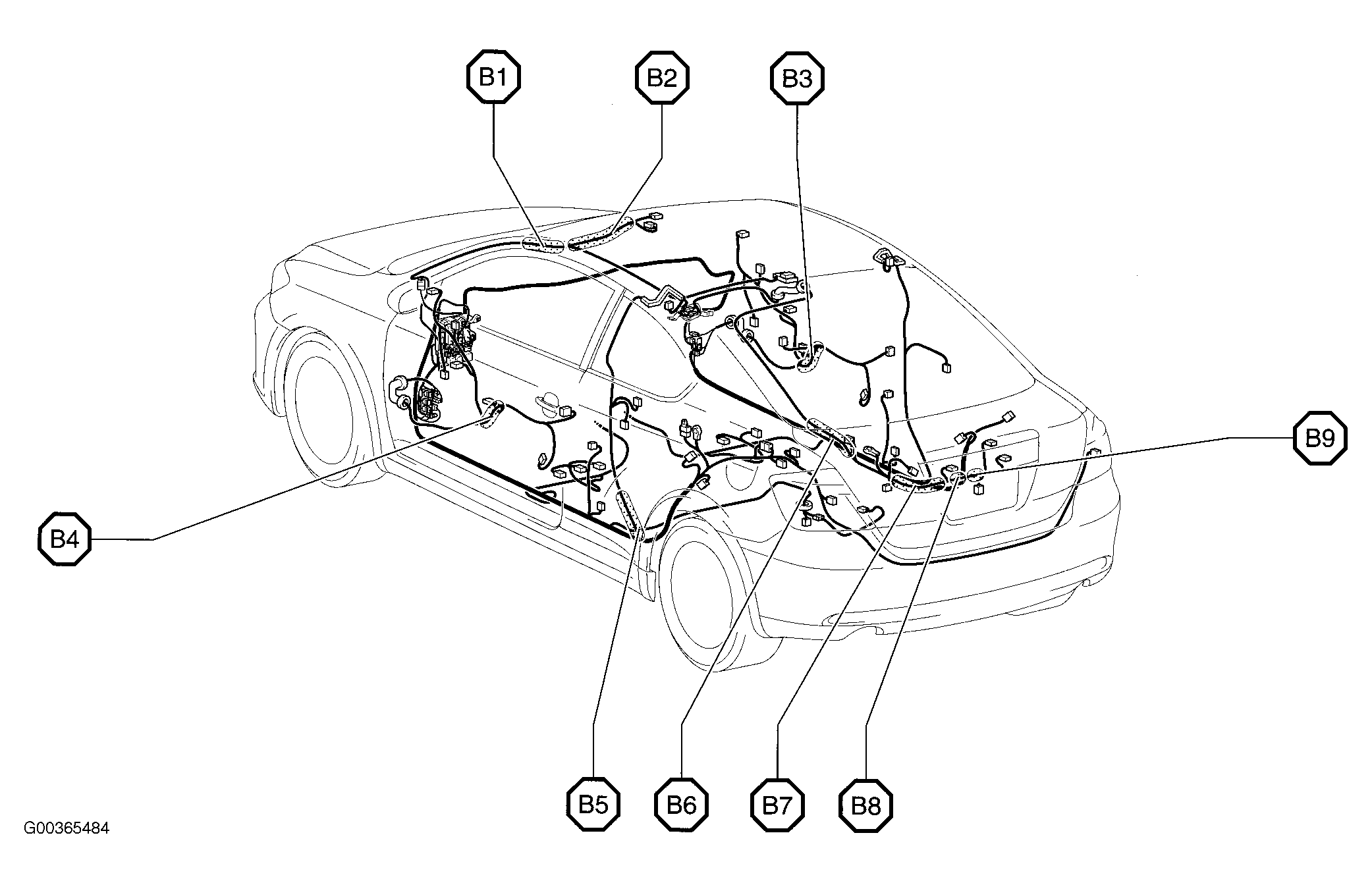 B6 In body harness, right rear of vehicle. See Figure.
