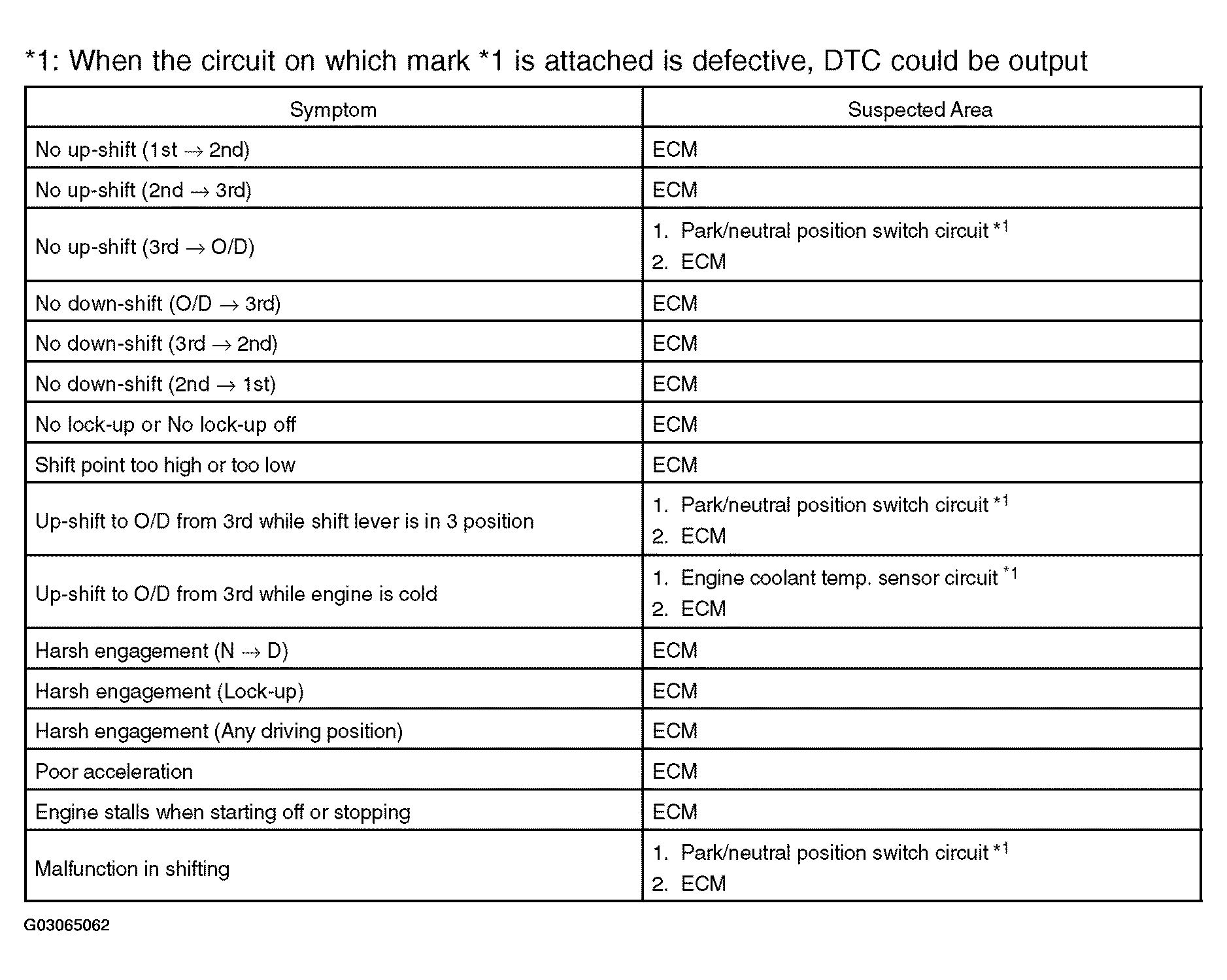 - Refer to the table shown in Fig 1 when the trouble cause is considered to be electrical.