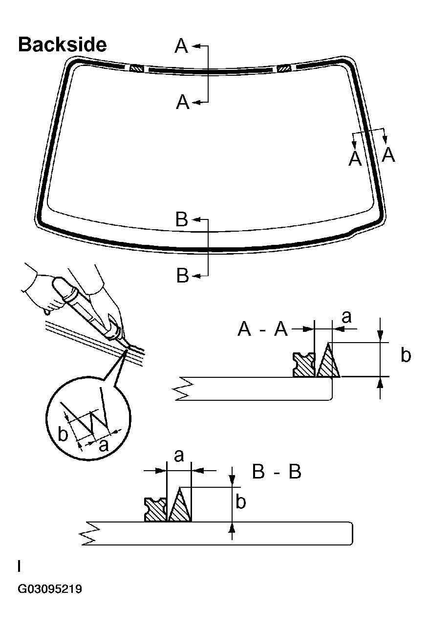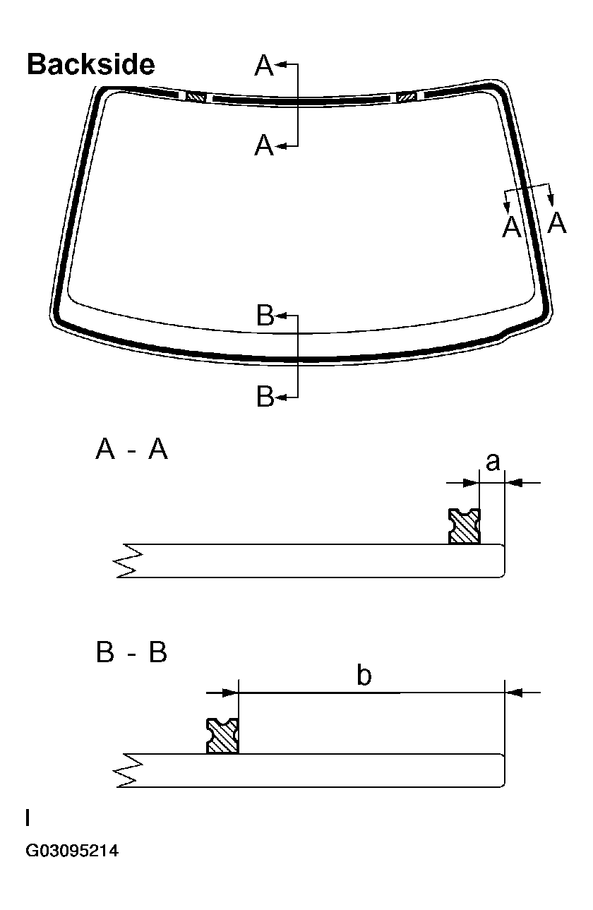 WINDOW GLASS ADHESIVE DAM INSTALLATION SPECIFICATIONSArea Measurement a 7.0 mm (0.276 in.) b 23.5 mm (0.925 in.)