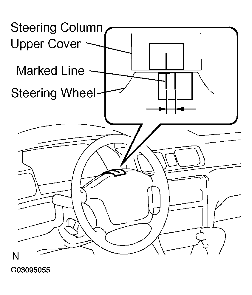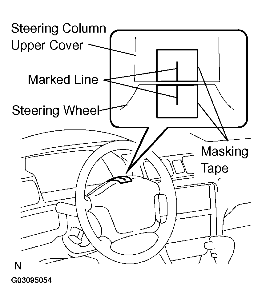 - Apply masking tape to the top center of the steering wheel and steering column upper cover.