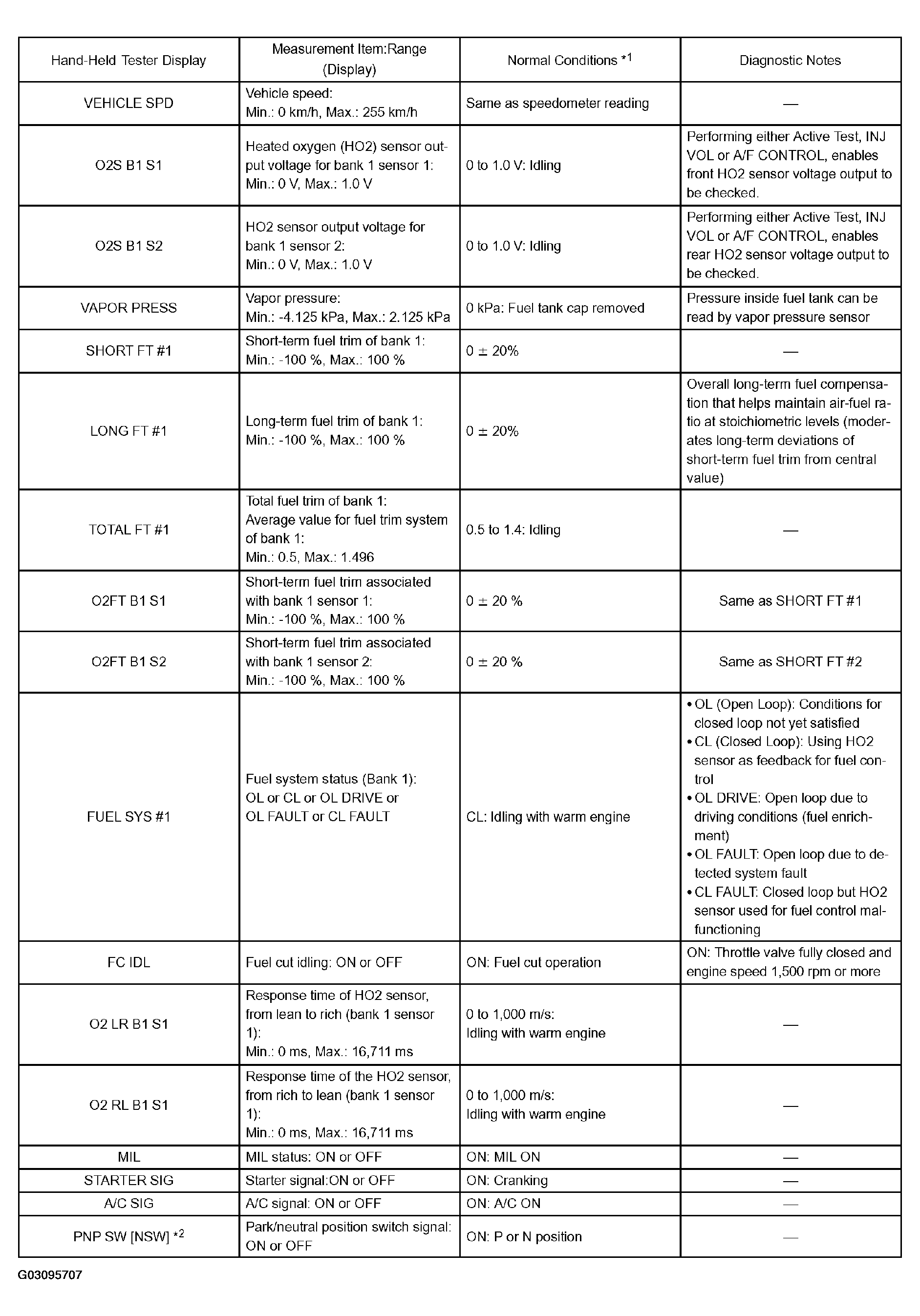 By reading the DATA LIST displayed on a hand-held tester or OBD II scan tool, you can check values, including those of the switches, sensors, and actuators, without removing any parts. Reading the DATA LIST as the first step of troubleshooting is one method of shortening diagnostic time.