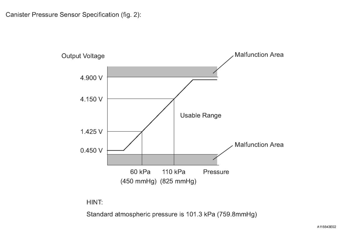 | (b) Canister pressure sensor | Indicates pressure as voltage. ECM supplies regulated 5 V to canister pressure sensor, and uses feedback from sensor to monitor EVAP system pressure (refer to Fig 5). |
