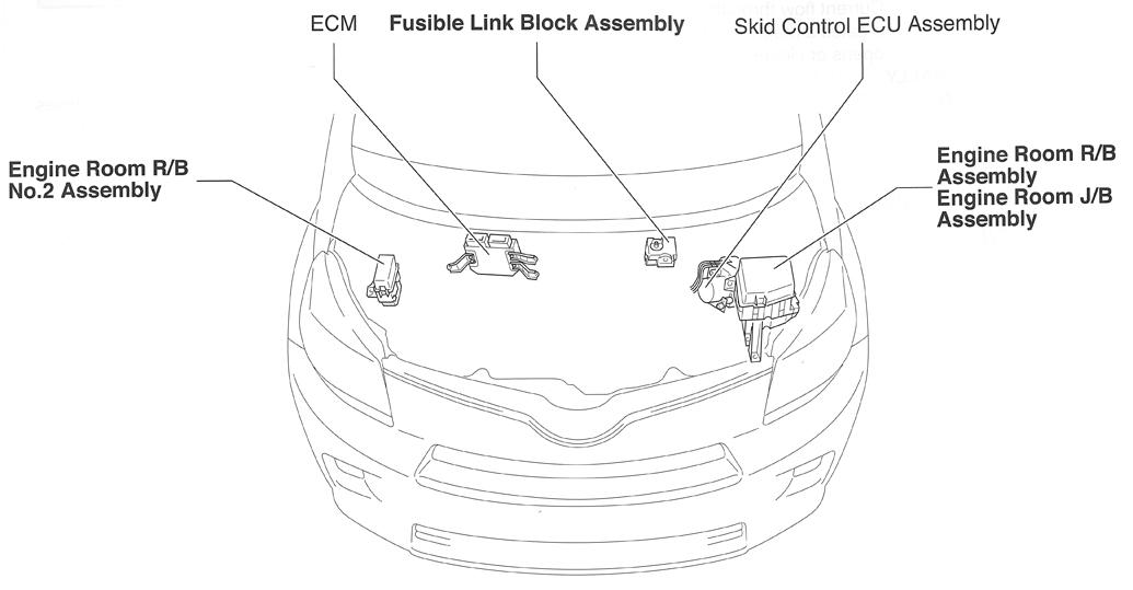 | Skid Control ECU | Left side of engine compartment. See Figure. |