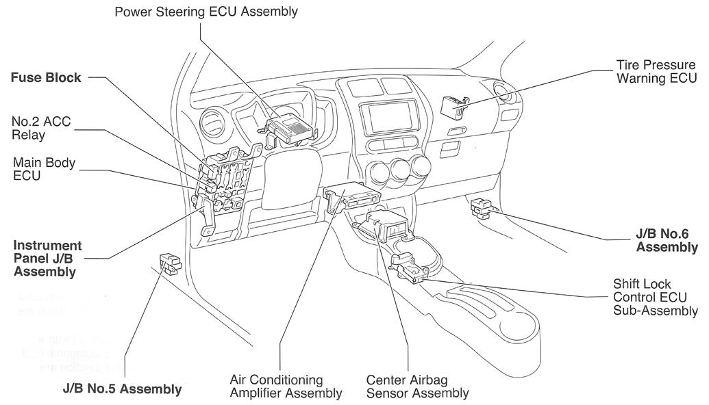 | Tire Pressure Warning ECU | Behind right side of dash. See Figure. |