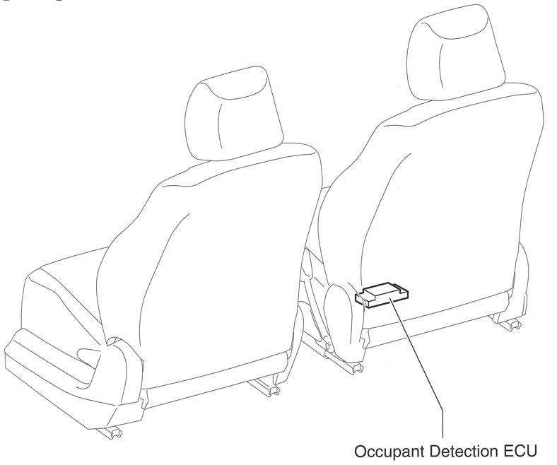 | Occupant Detection ECU | Under front passenger's seat. See Figure. |