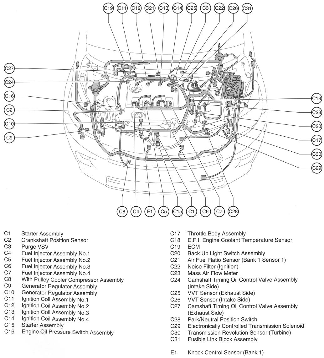 | ECM (Engine Control Module) | Right rear of engine compartment. See Figure. |