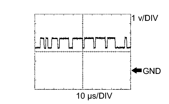 ECM Terminal Name Between CANL and E1 Tester Range 1 v/DIV, 10 μs/DIV Condition Engine stops and ignition switch ON HINT: