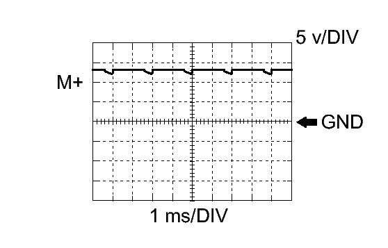 ECM Terminal Name Between M+ and ME01 Tester Range 5 v/DIV, 1 ms/DIV Condition Idling with warm engine HINT: