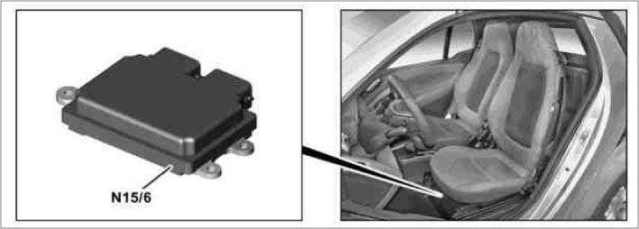 | Automated Manual Transmission Control Unit (N15/6) | Under driver's seat. See Figure. |