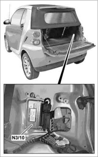 | ME-SFI (ME) Control Unit (N3/10) | Right rear of luggage compartment. See Figure. |
