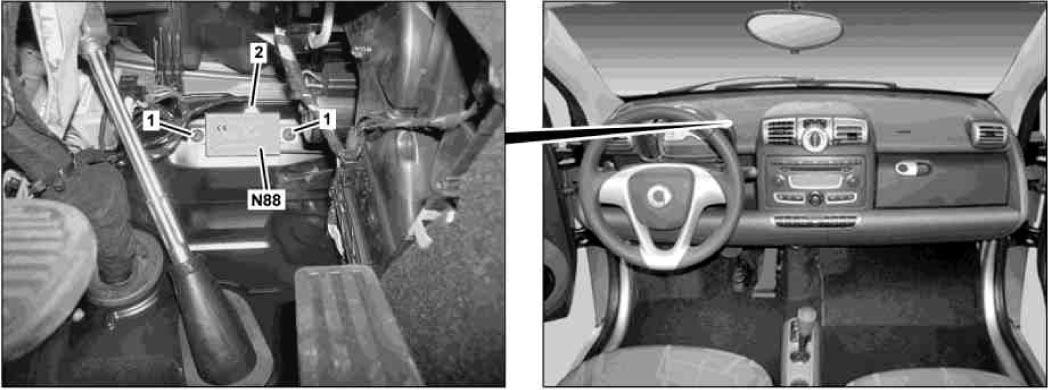 | Front HS (SIH) Control Unit (N25/5) | Left side of dash. See Figure. |