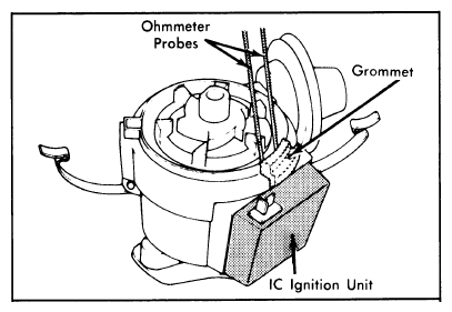 Turn ignition off. Remove ignition unit. Measure resistance between both pick-up coil terminals. See Fig 1. If ohmmeter reads approximately 400 ohm, pick-up coil is okay. If not, replace faulty pick-up coil.
