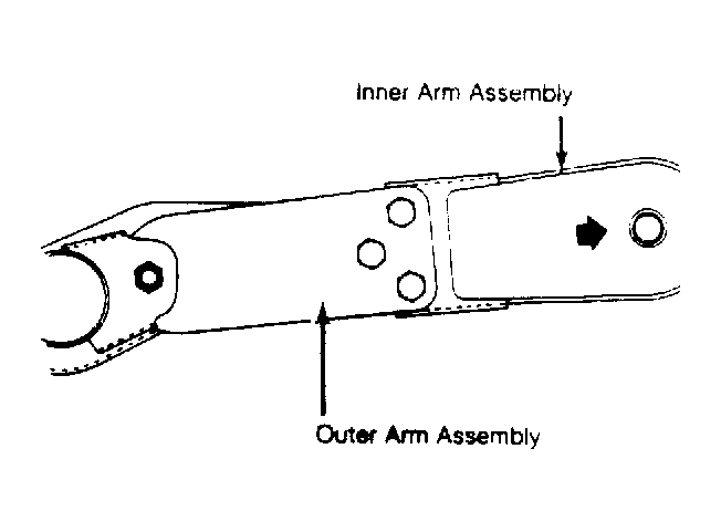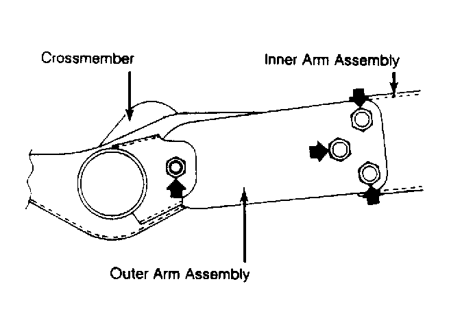 1. Loosen outer mounting bolts. See Fig 1 . When toe-in (or side slip) is excessive, tighten outer arm mounting bolts while pulling end of spindle towards rear of vehicle. This would be in direction of arrow. See Fig 2 .