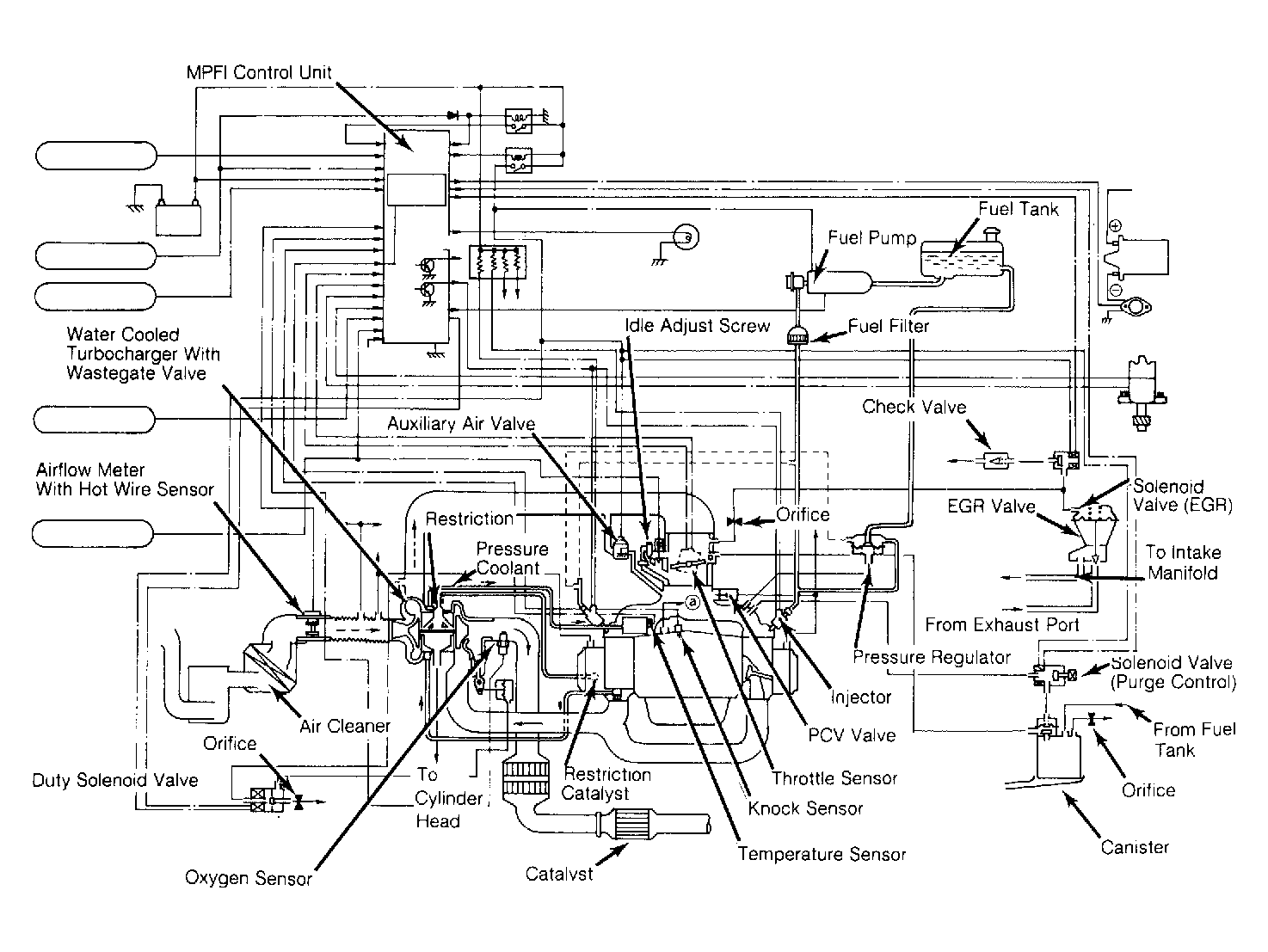 The Multi-Point Fuel Injection (MPFI) system supplies optimum air/fuel mixture to the engine under various operating conditions through use of latest electronic technology. With this system, constantly pressurized fuel is injected into intake air passage of the cylinder head.