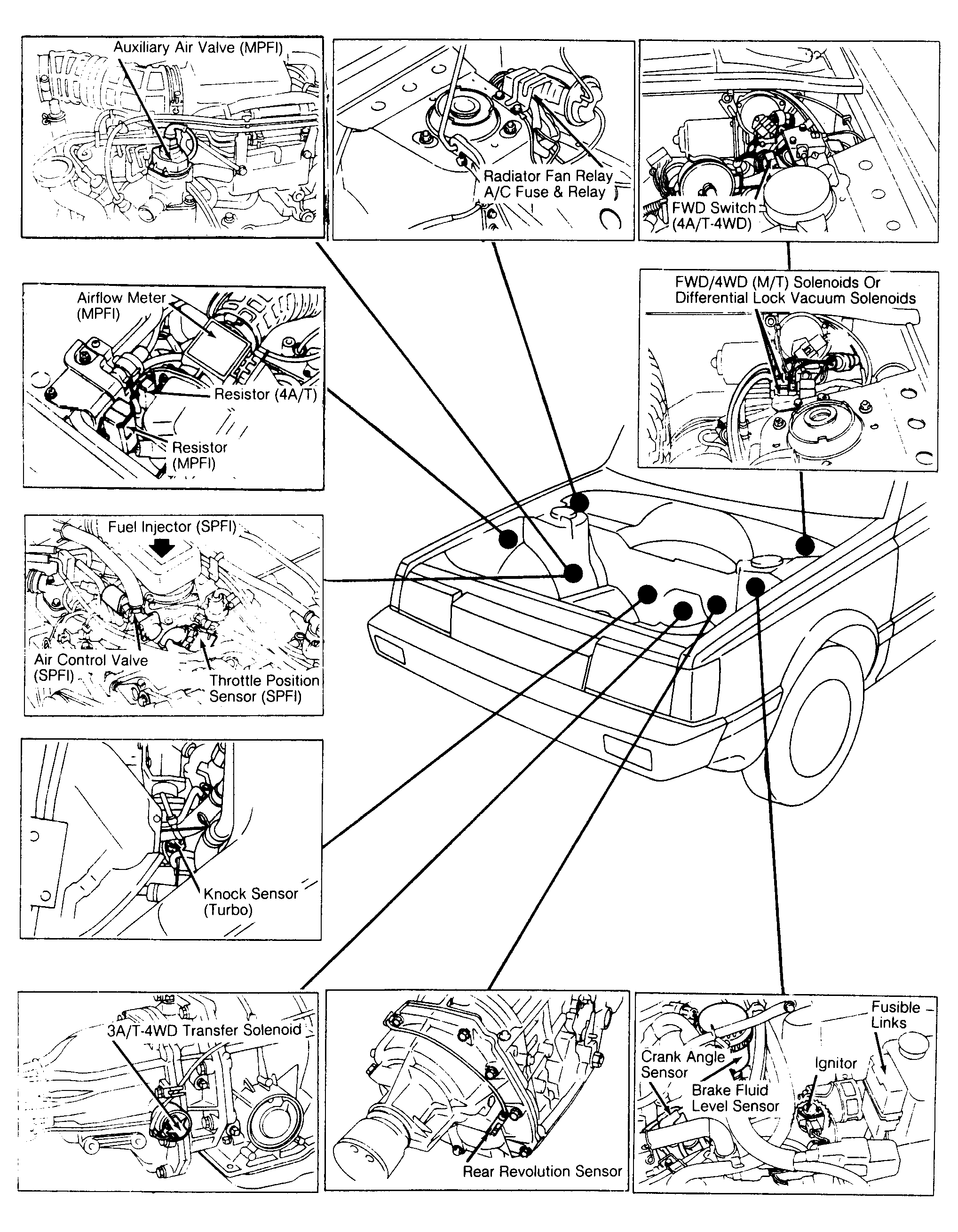 | Fusible Links | In front of left strut tower, near battery. See Figure . |