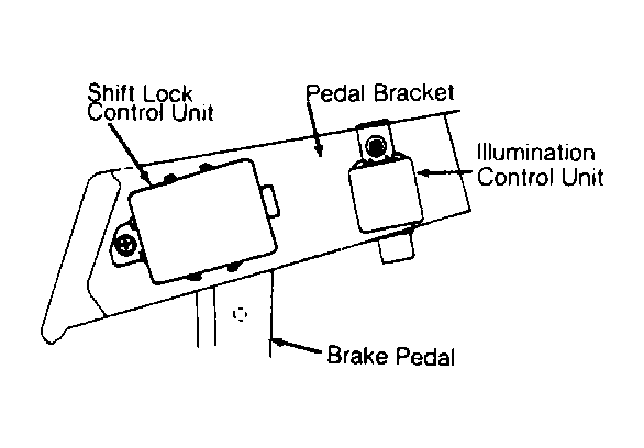| Shift Lock Control Unit | On brake pedal bracket. See Figure . |