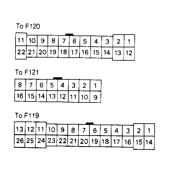 - ECU circuits are checked at the ECU connector under one or more of the following conditions: ignition off, ignition on and engine off, or ignition on and engine running. Test between indicated terminal No. and body ground. Use wire color to help identify terminal. See appropriate ECU CONNECTOR TERMINAL ID table. To test pin voltage, carefully backprobe terminal at harness side of ECU connector. See Fig 1 and Figure .