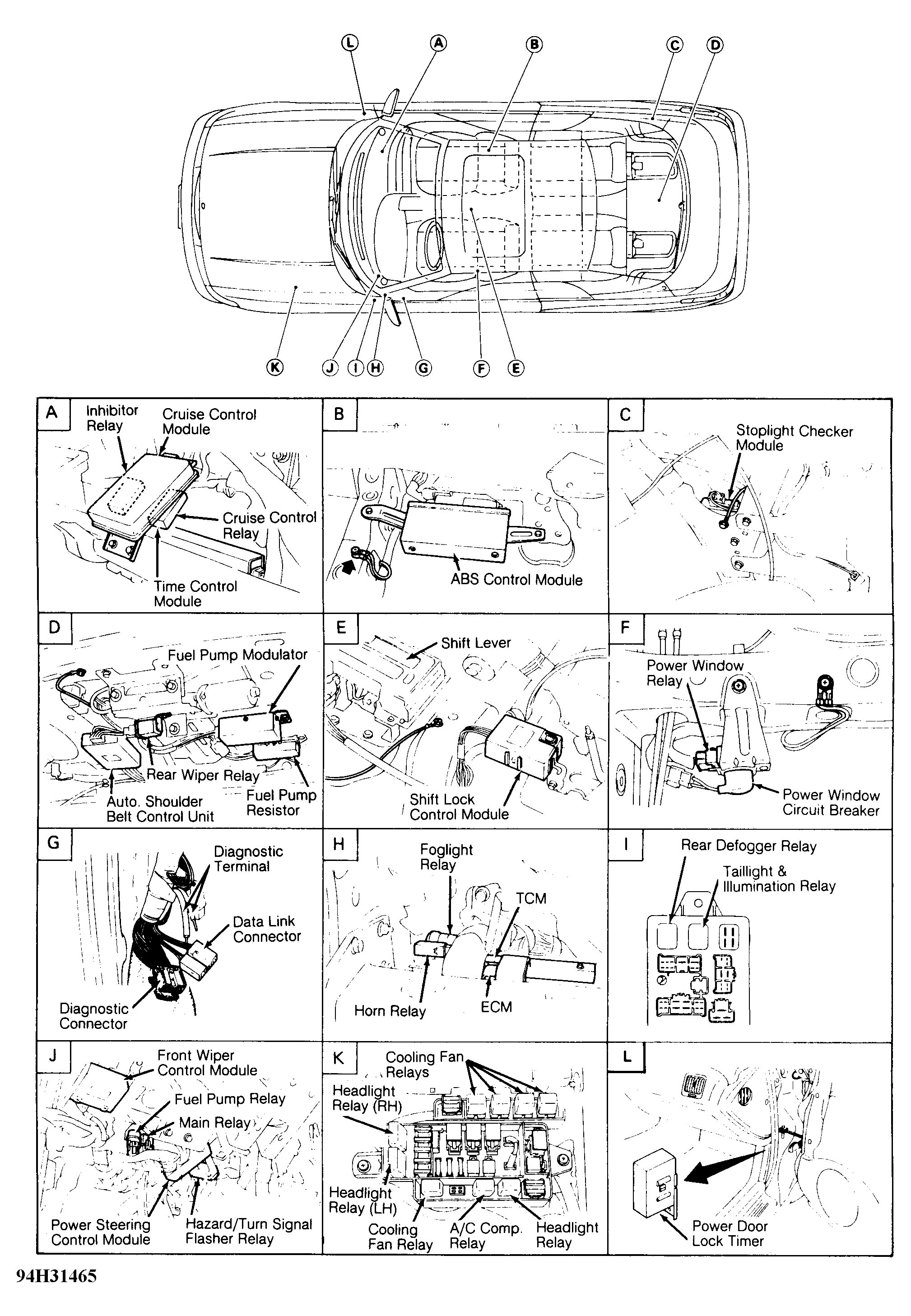 | Shift Lock Control Module | Under center console, behind shift lever. See Figure . |