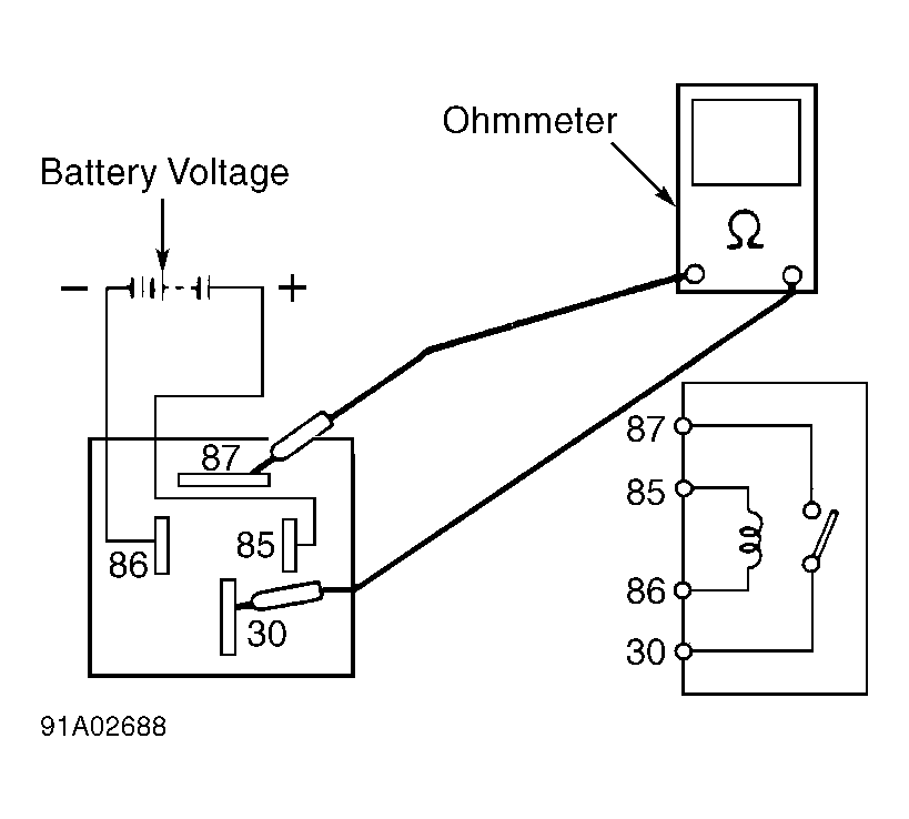 . Check resistance between relay terminals 85 and 86. Resistance should be 72-88 ohms. Replace relay if measurements and/or continuity is not as specified. If relay is okay, replace hydraulic unit. See REMOVAL & INSTALLATION.