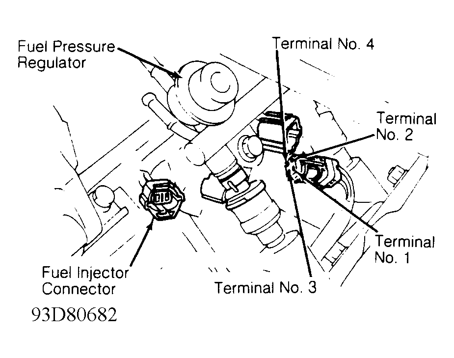 Measure Between Terminals Ohms No. 1 (1) & (1) No. 2 (2) Less Than One No. 2 (1) & (1) No. 2 (2) Less Than One No. 3 (1) & (1) No. 1 (2) Less Than One No. 2 (3) & (1) No. 3 (2) Less Than One (1) Measure at ECU connector F121. (2) Measure resistance at pressure sensor connector. See Figure . (3) Measure at ECU connector F119. - Reconnect ECU connectors. Measure resistance between terminals No. 1 and 2 and between terminals No. 2 and 3 of pressure sensor connector. See Figure . If both resistances are infinite, go to next step. If either resistance is not infinite, repair connector and/or wiring harness as necessary.