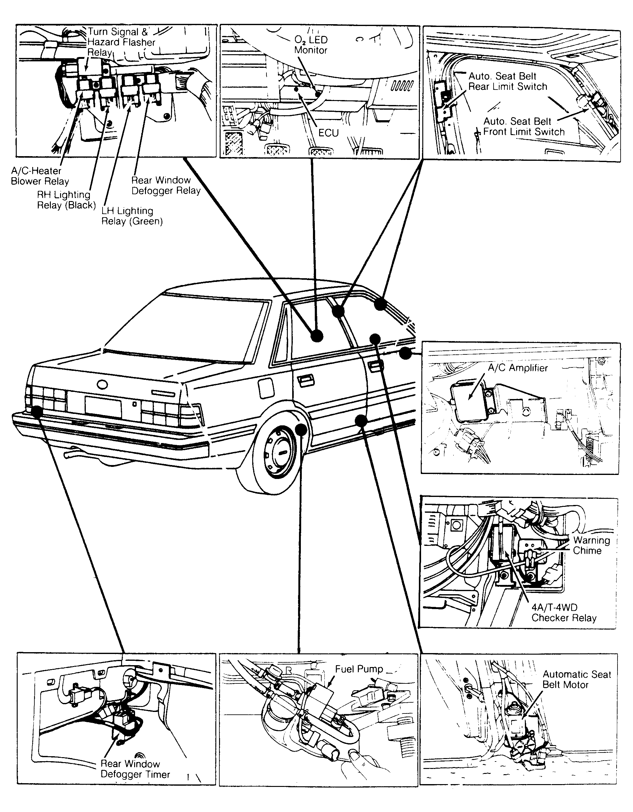 | A/T Control Unit (4A/T) | In trunk, on left rear wheelwell. |