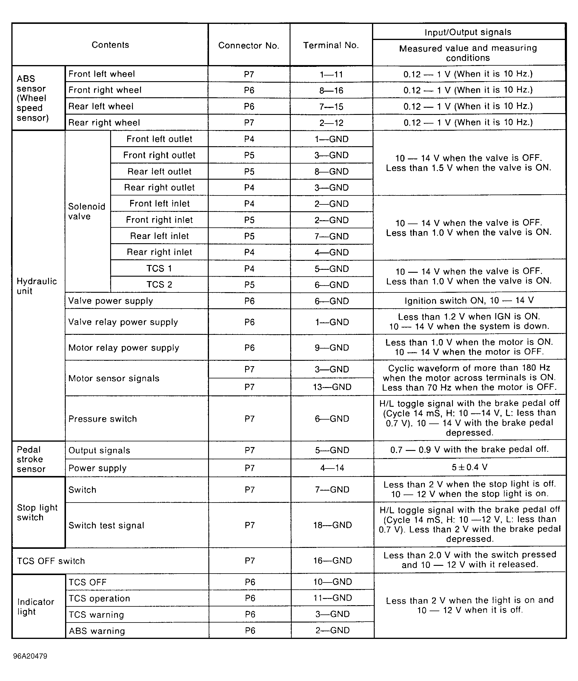 Fig 1: ABS/TCS Control Unit Pin Voltage Chart (1 Of 2)