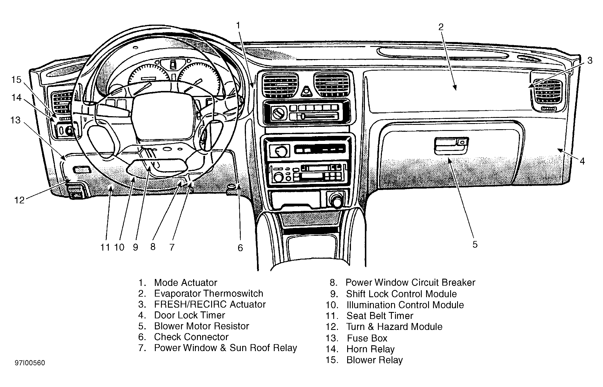 | Turn & Hazard Module | Behind left side of dash. See Figure. |