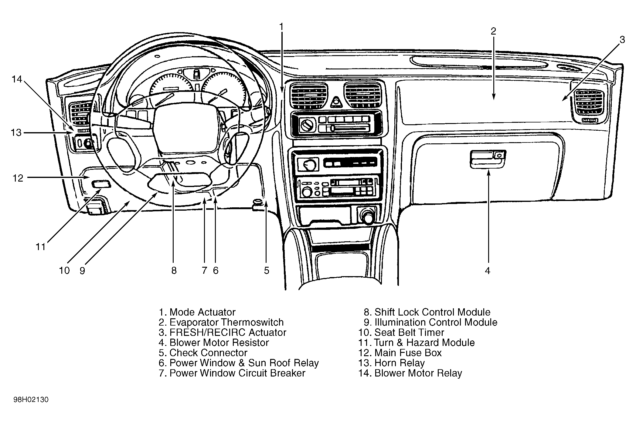 | Power Window Circuit Breaker | Behind dash, right of steering column. See Figure. |