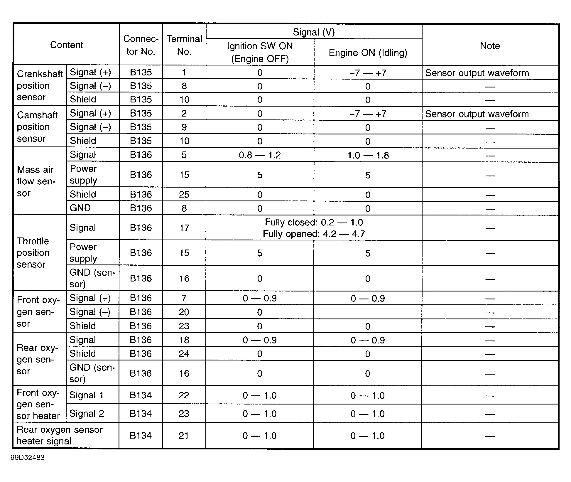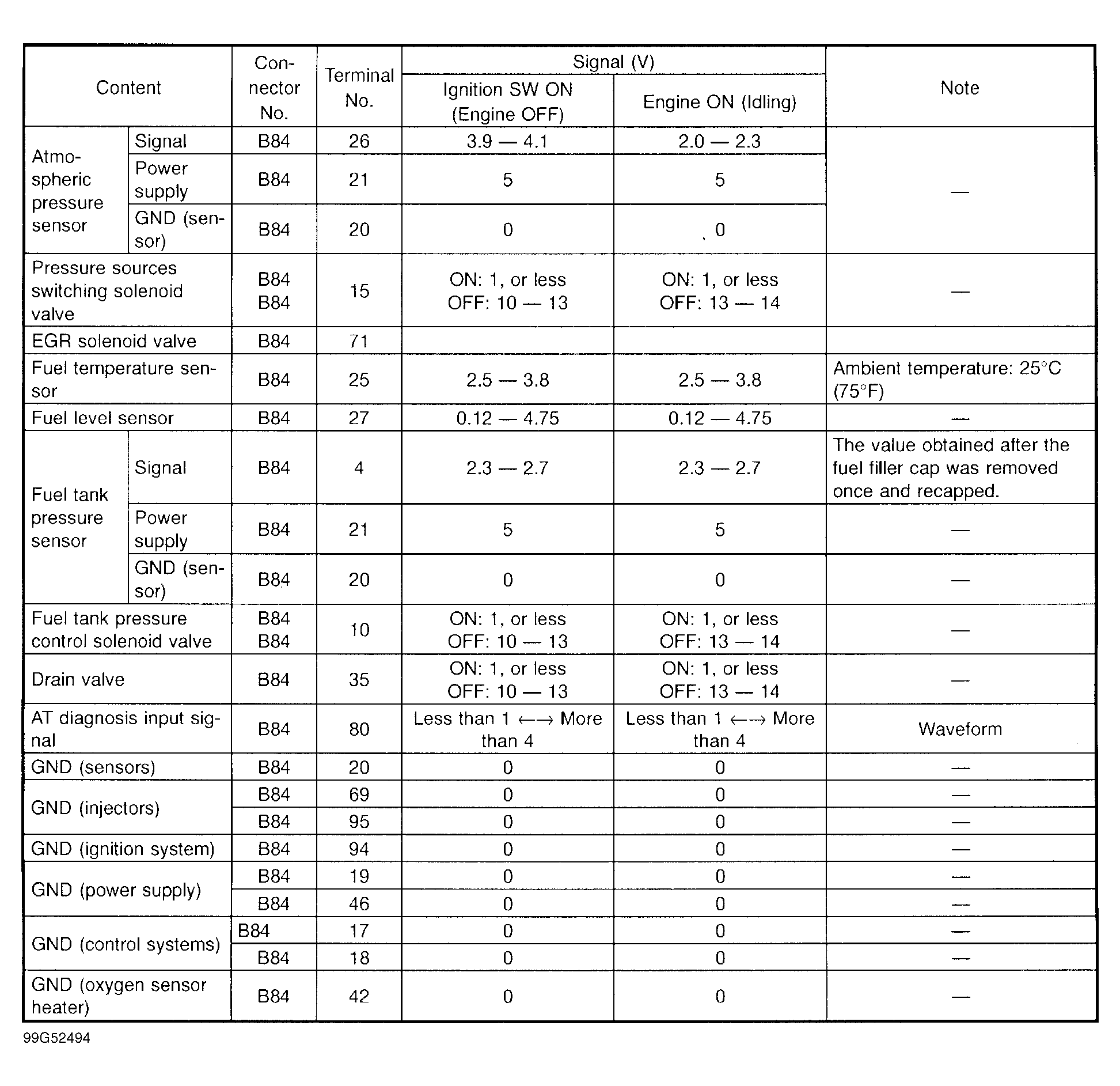 Engine Controls - Pin Voltage Charts: Testing