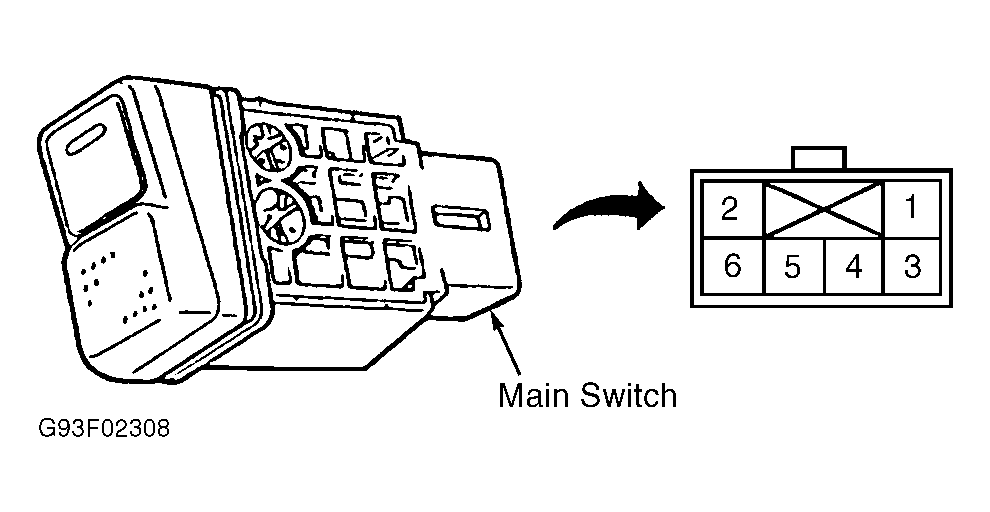 - Turn cruise control main switch to OFF position. Measure resistance between cruise control main switch terminals No. 3 and 5. If resistance is less than one megohm, go to next step. If resistance is one megohm or greater, replace cruise control main switch.