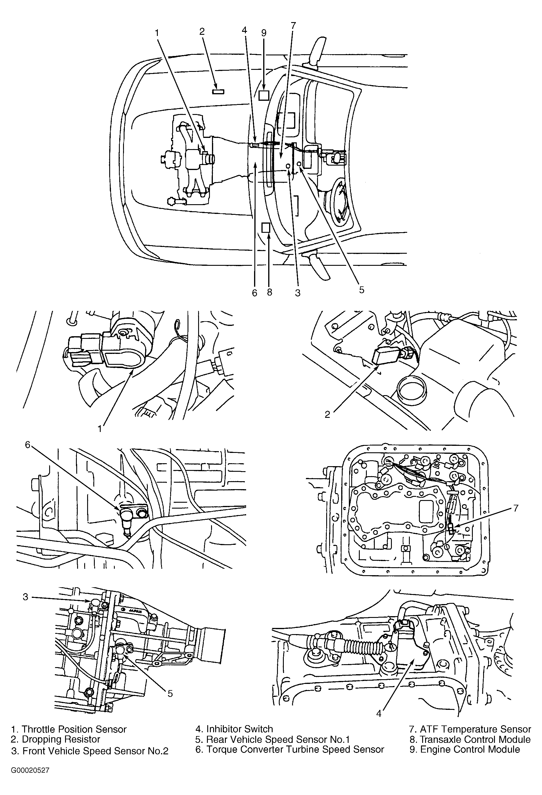 The Transaxle Control Module (TCM) receives information from various input devices and uses this information to control shift and duty solenoids. TCM is located under left side of instrument panel. See Figure . TCM contains a self-diagnostic system, which will store a DTC if a failure or problem exists in electronic control system. DTC can be retrieved to determine transaxle problem area. See RETRIEVING DIAGNOSTIC TROUBLE CODES under DIAGNOSIS & TESTING.