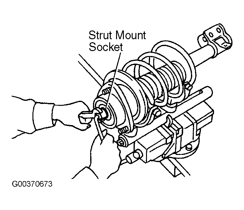 - Using hexagon wrench to prevent strut rod from turning, tighten self-locking nut with strut mount socket. See Figure.