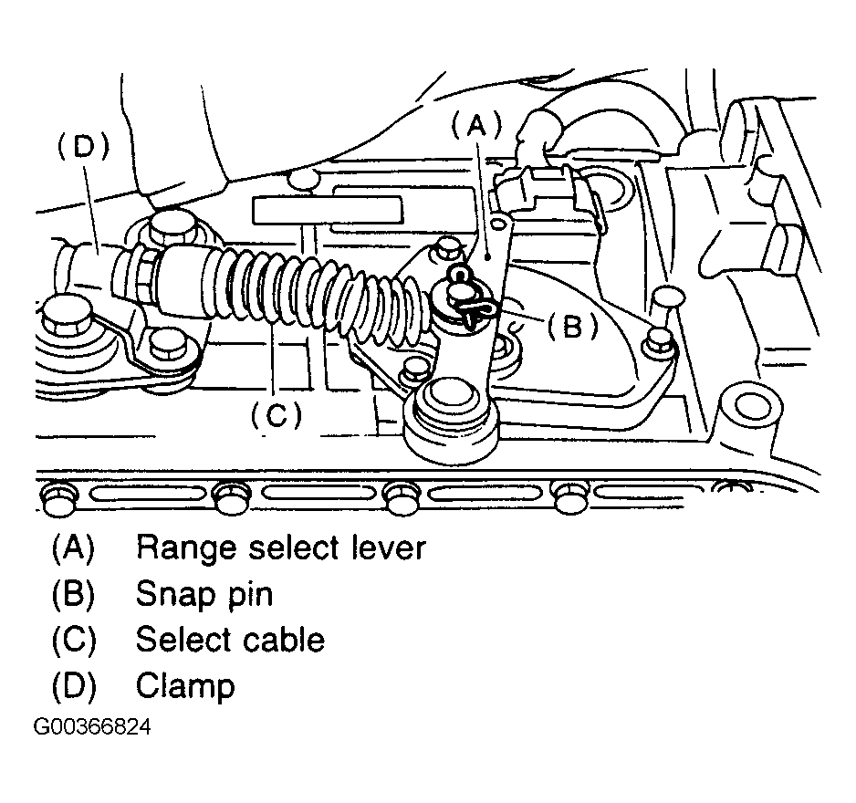 - Move the select lever to the "N" position, then adjust the select cable position. See SELECT CABLE under ADJUSTMENTS.