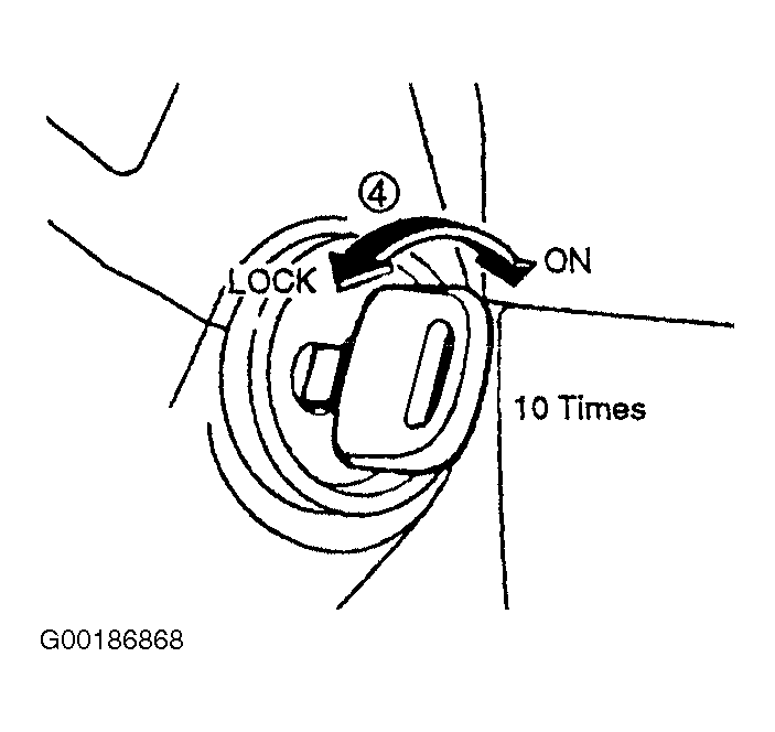 - Place the ignition key into ignition switch and cycle the switch from LOCK to ON 10 times within 15 seconds. Be sure to stop at the LOCK position. See Fig 1