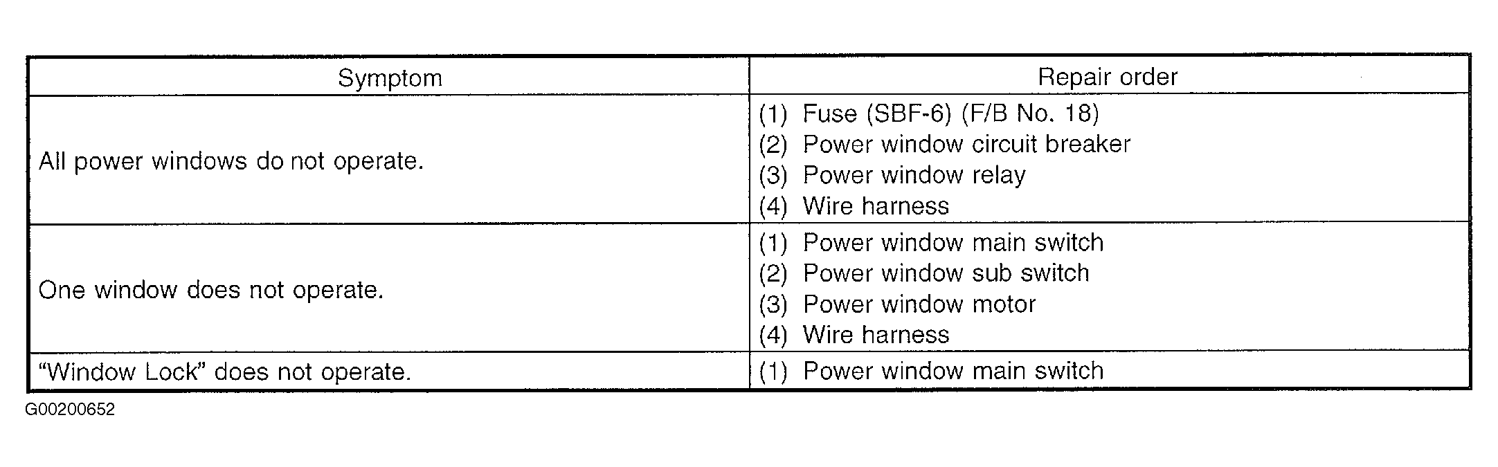 To trouble shoot power window system, use chart in