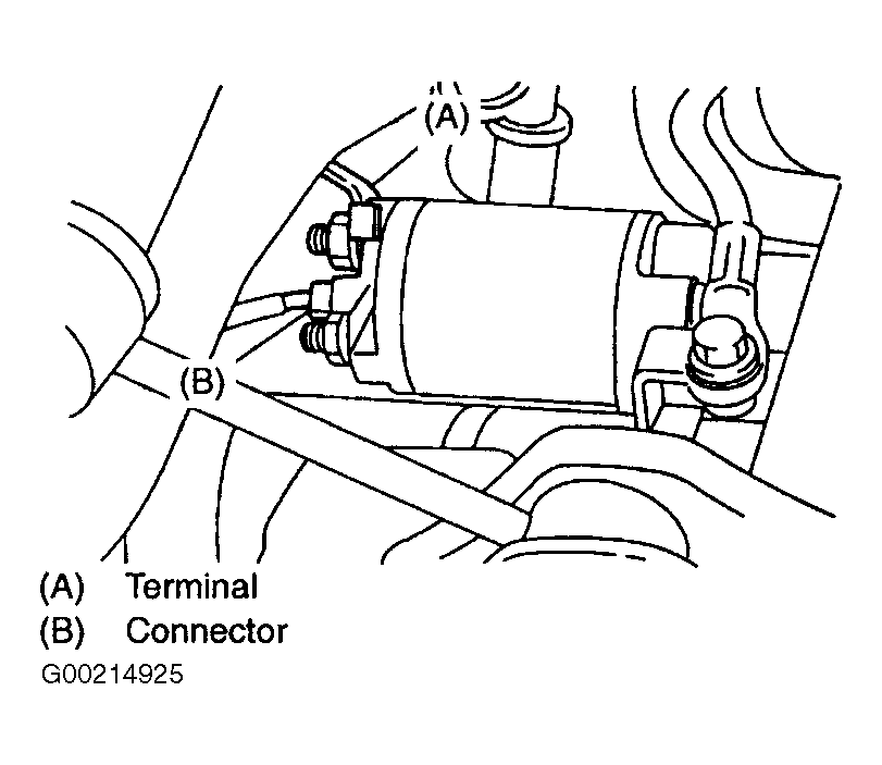 - Disconnect connector and terminal from starter. See Fig 2 .