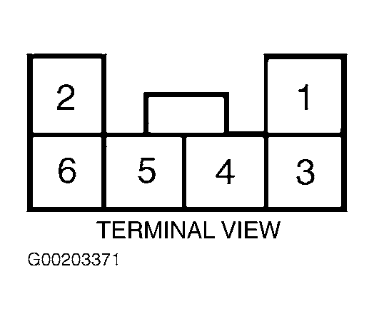Fig 2: Identifying Terminals On Harness Side Of Black 6-Pin In-Line Fuel Pump Harness Connector (Legacy & Outback)