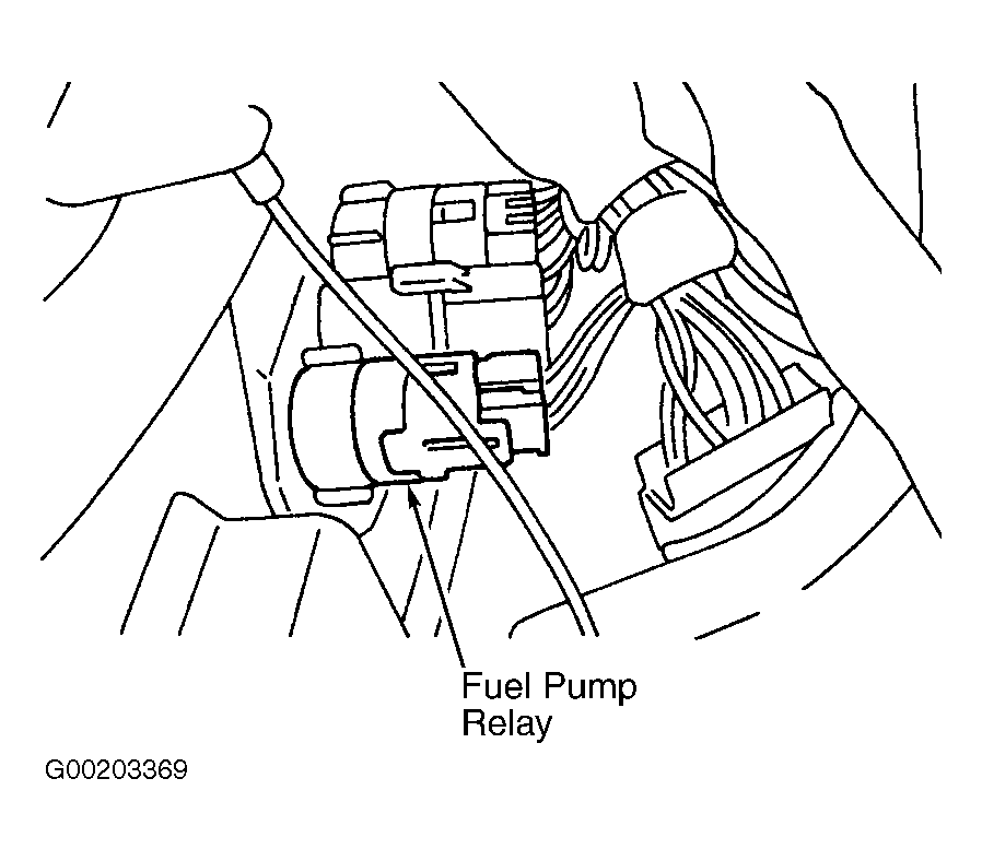 Turn ignition off. Disconnect Green 4-pin electrical harness connector from fuel pump relay. Fuel pump relay is located under left side of instrument panel. See Fig 1 . Start and run engine until it stalls. After engine stalls, crank engine for 5 seconds. Turn ignition off. Reconnect fuel pump relay connector.