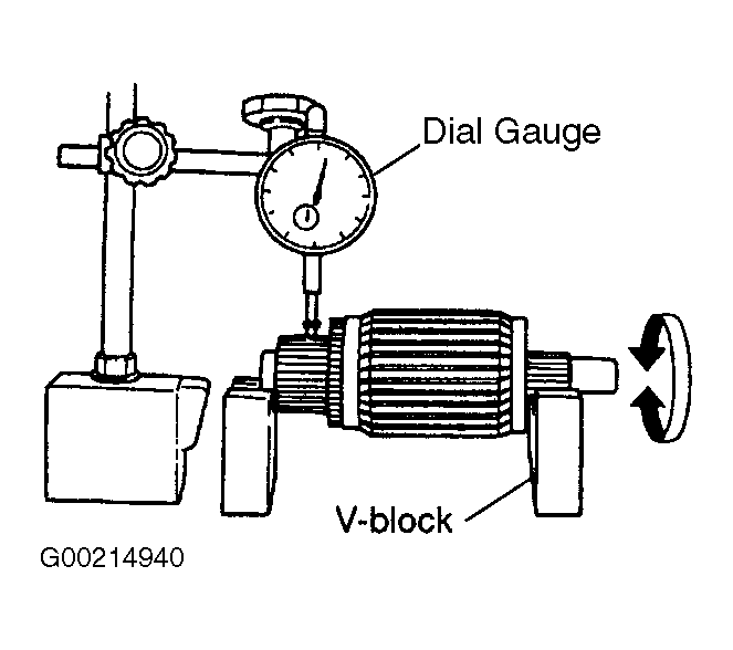 - Check the commutator run-out and replace if it exceeds the limit. See Fig 1. See STARTER SPECIFICATIONS table under STARTER SPECIFICATIONS.