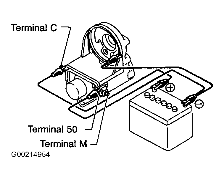Connect 2 battery negative leads onto terminal 50 and onto switch body respectively. See Fig 3. Then connect battery positive lead onto terminal C. Next, disconnect lead from terminal 50. Pinion should return immediately.