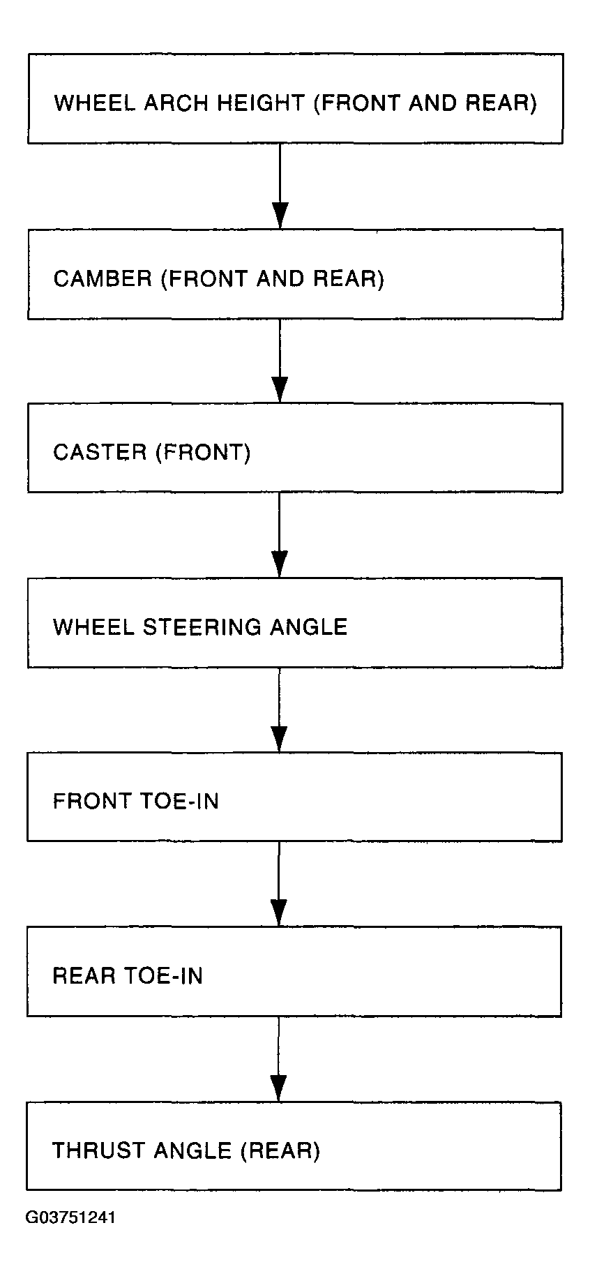 Check, adjust and/or measure wheel alignment in accordance with procedures indicated in Fig 1 :
