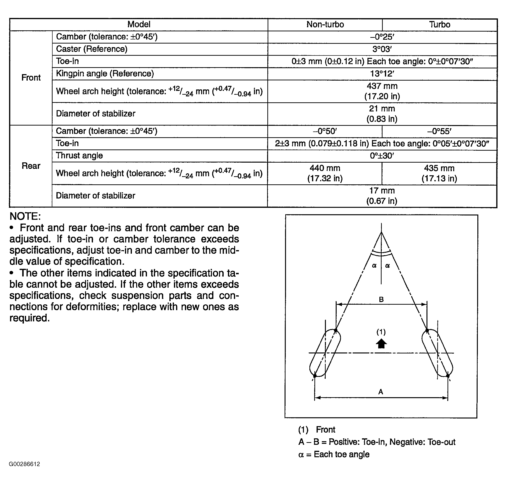Wheel Alignment: Specifications: Specifications