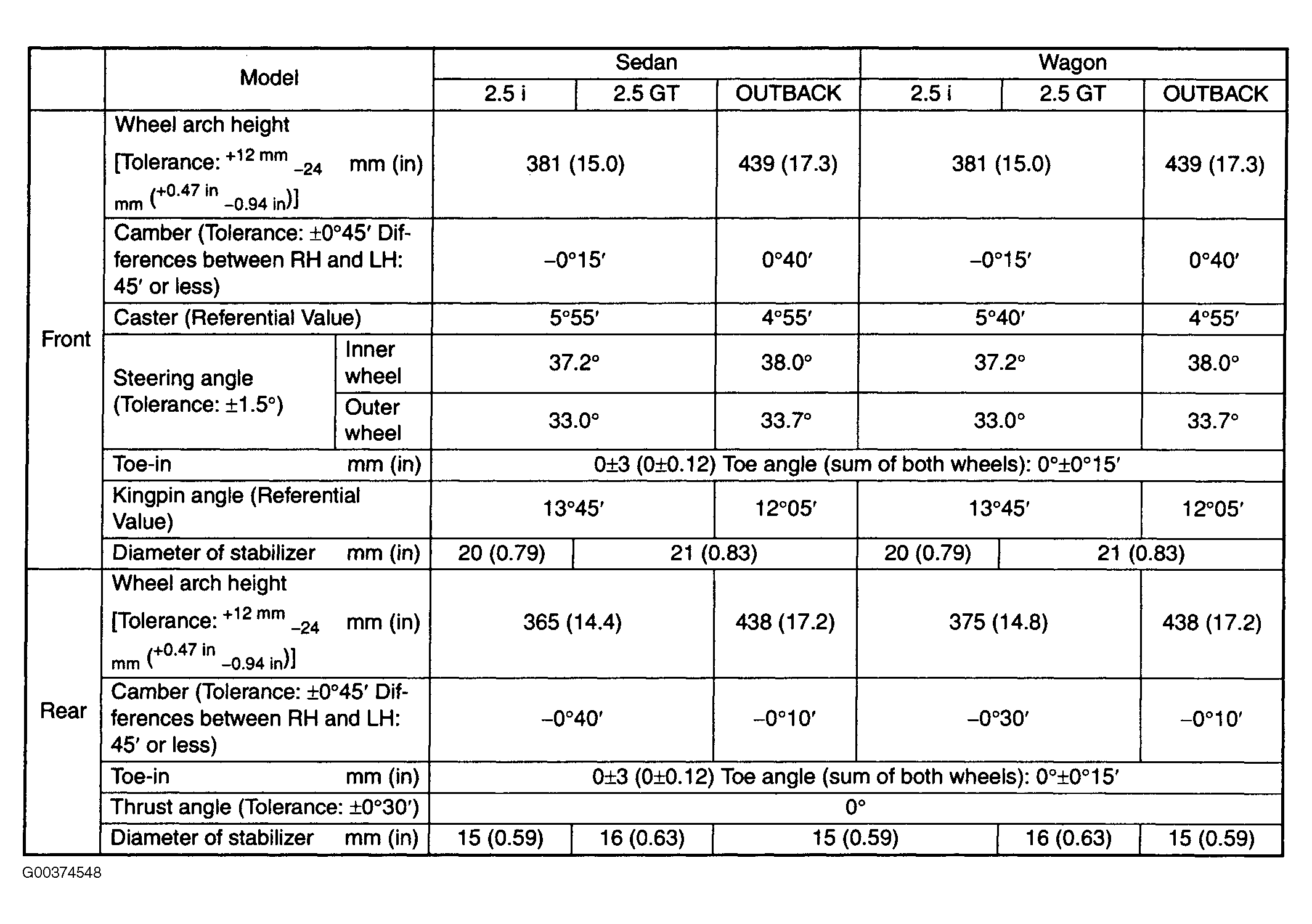 Wheel Alignment: Specifications: Specifications