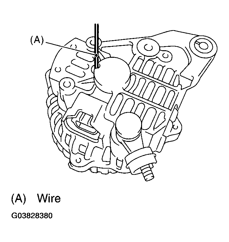 Before assembling, press the brush down into brush holder, and then fix them in that position by passing a [1 mm (0.08 in) dia. 40 to 50 mm (1.6 to 2.0 in) long] wire through the hole as shown in Fig 1 .