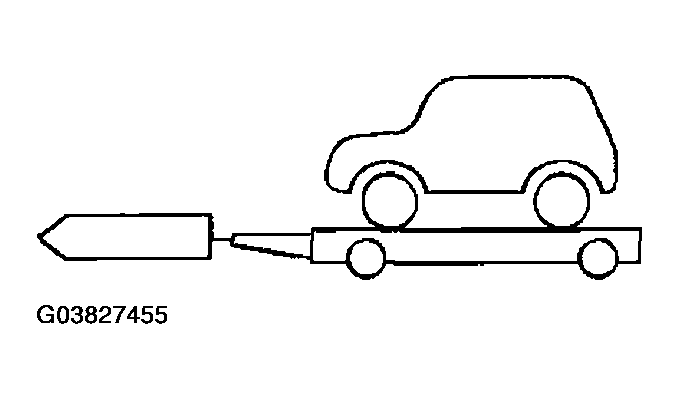 Lifting up four wheels (On a trailer) Fig 3 Towing the vehicle with lifting up all four wheels is a basic rule for AWD modes. (1) (1)