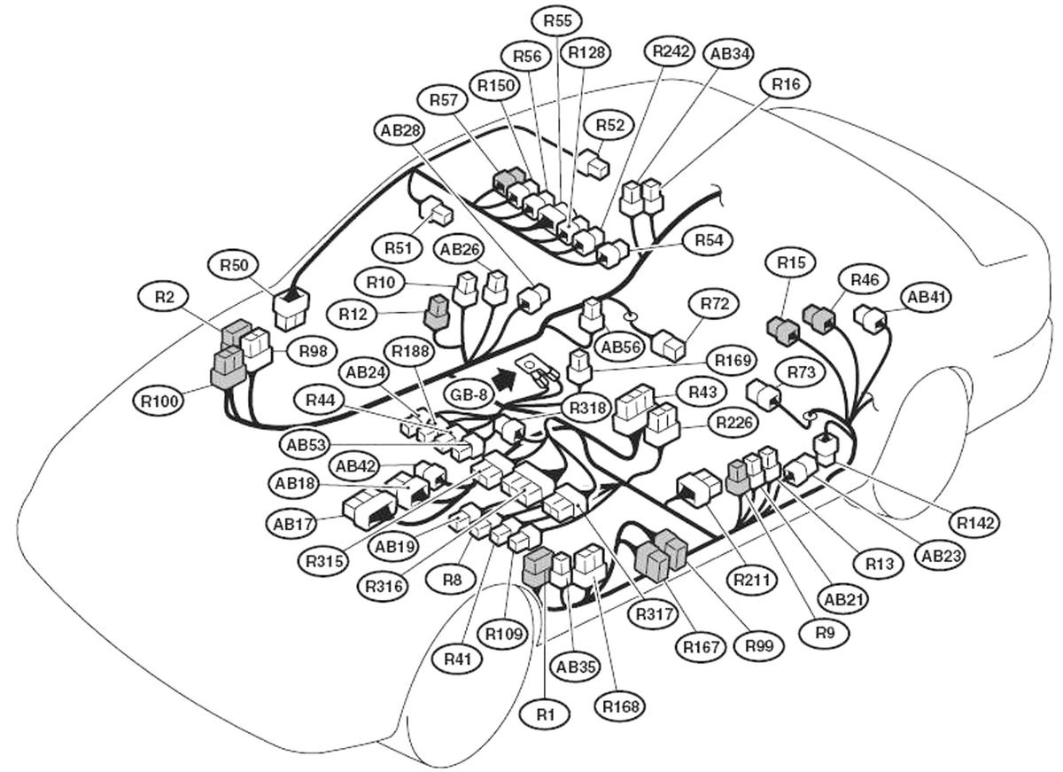 Airbag Control Module (Wagon) (AB18) Under front of center console. See Figure.
